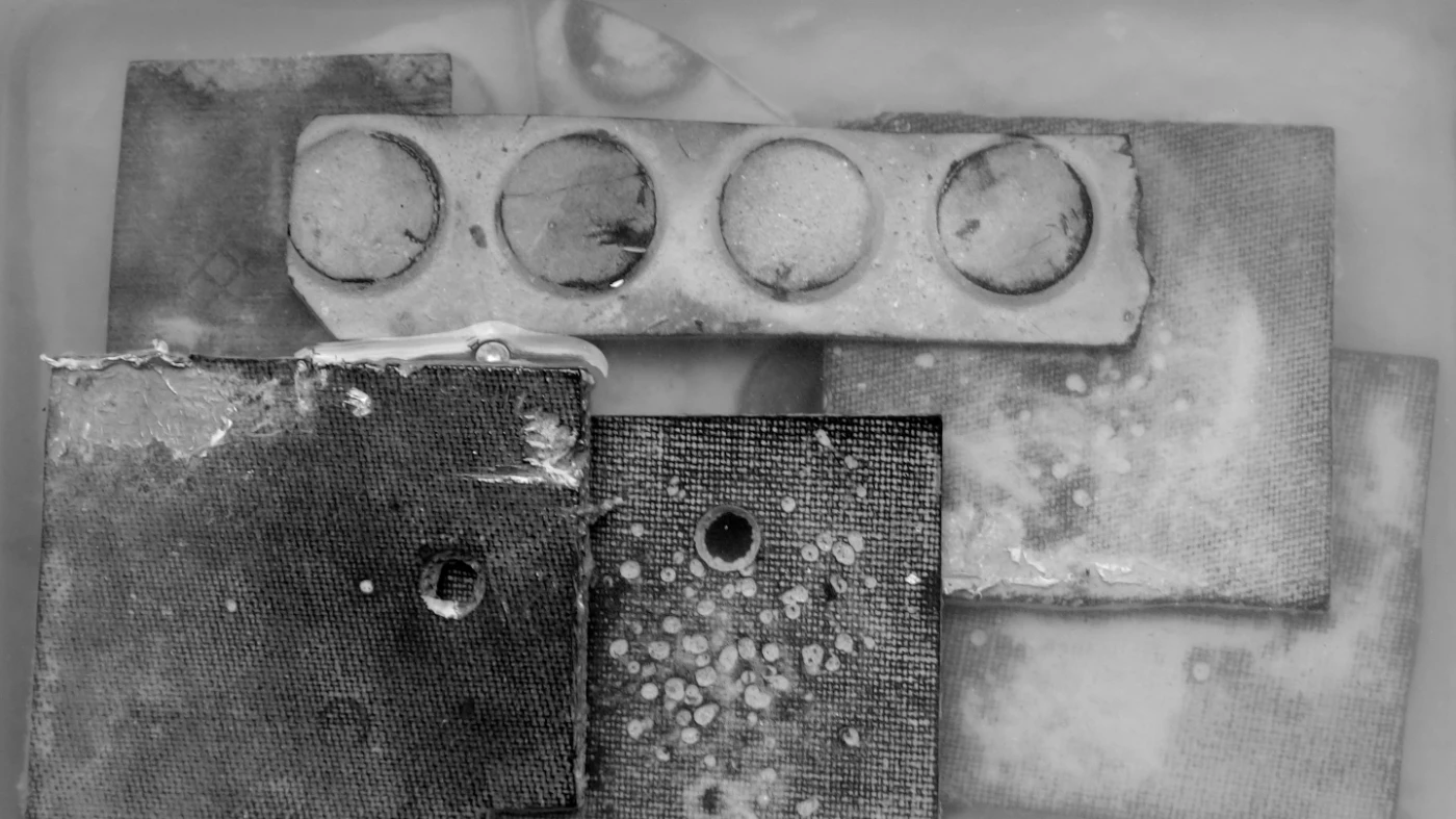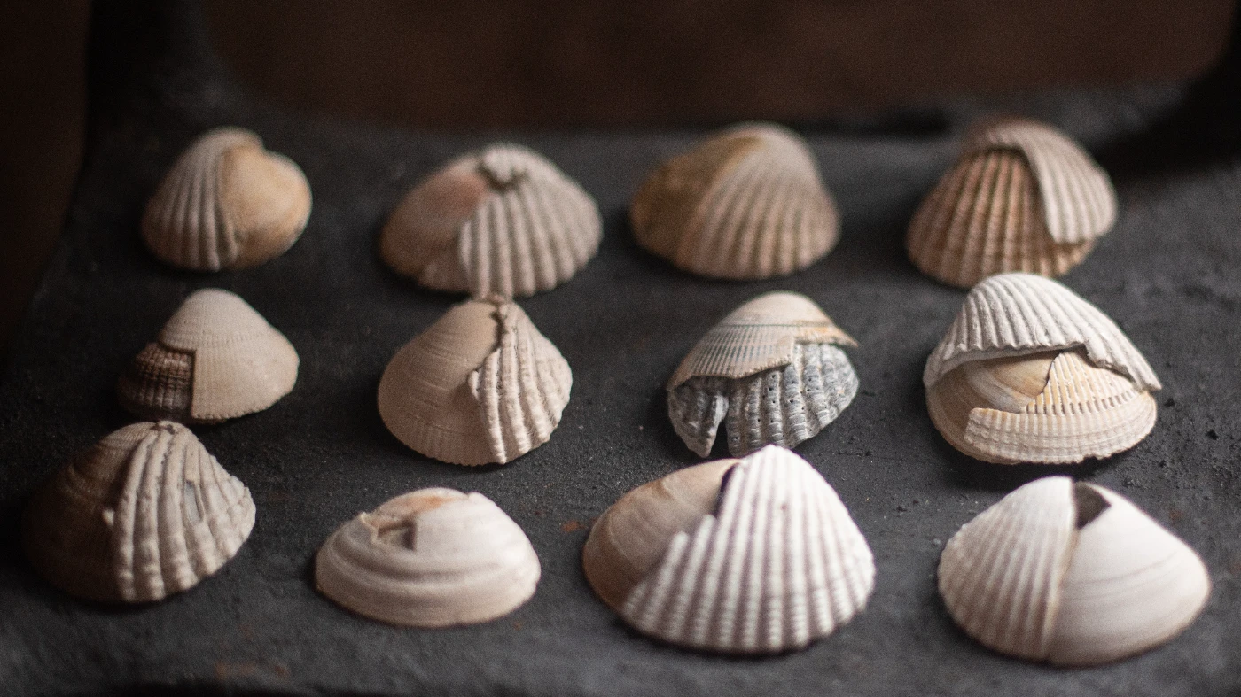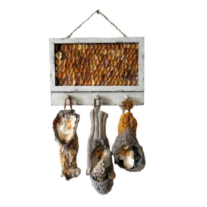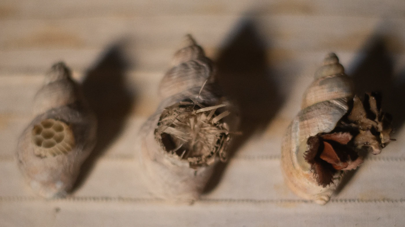 In de gang van het Wevershuis hangt een serie zeemeermintasjes, staan (mini) stoeltjes van eikapsels en schelpen. Een roestige wereld die je niet kende ontvouwt zich in de kelder en lijkt uit het zand opgegraven, wat stuk was is geheeld. Scherven zijn met geroest zand aangeheeld in borden en bekers. De resten en raapsels zijn verworden tot artefacten en archeobjecten, veelal met een huid van zandroest. Stukken oeroude Hartschelpen worden bezield met nieuwe schelpstukken tot duo-schelpen. Wulken zijn uitgegroeid tot schuilschelpen.