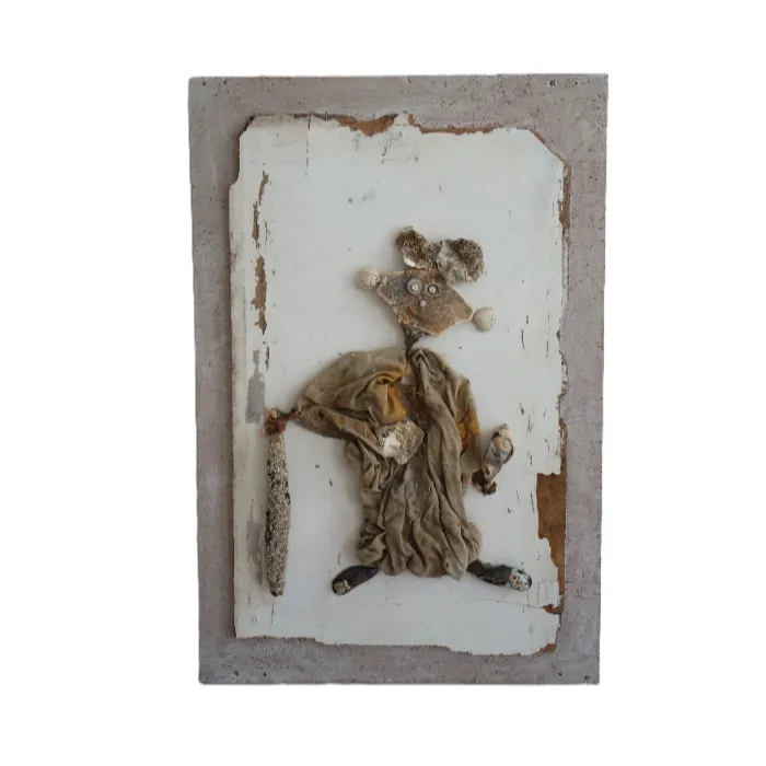 Meer ‘persoonlijke’ sporen vind je in de bedstede, waar zachte handen je lijken aan te raken. Handen zijn een terugkerend thema, in was, steen of textiel. En dan zijn er wezens die ‘de tijd bewaken’. Zoals ‘Pina’, het kastanjebladstokjesvrouwtje dat eeuwig naast haar huisje de wacht houdt. Of de bepokte Zeesluiswachtster, die waakt over de ingang van de zee. Ze is gemaakt van opgedregde vondsten uit de Scheveningse Spuisluis.