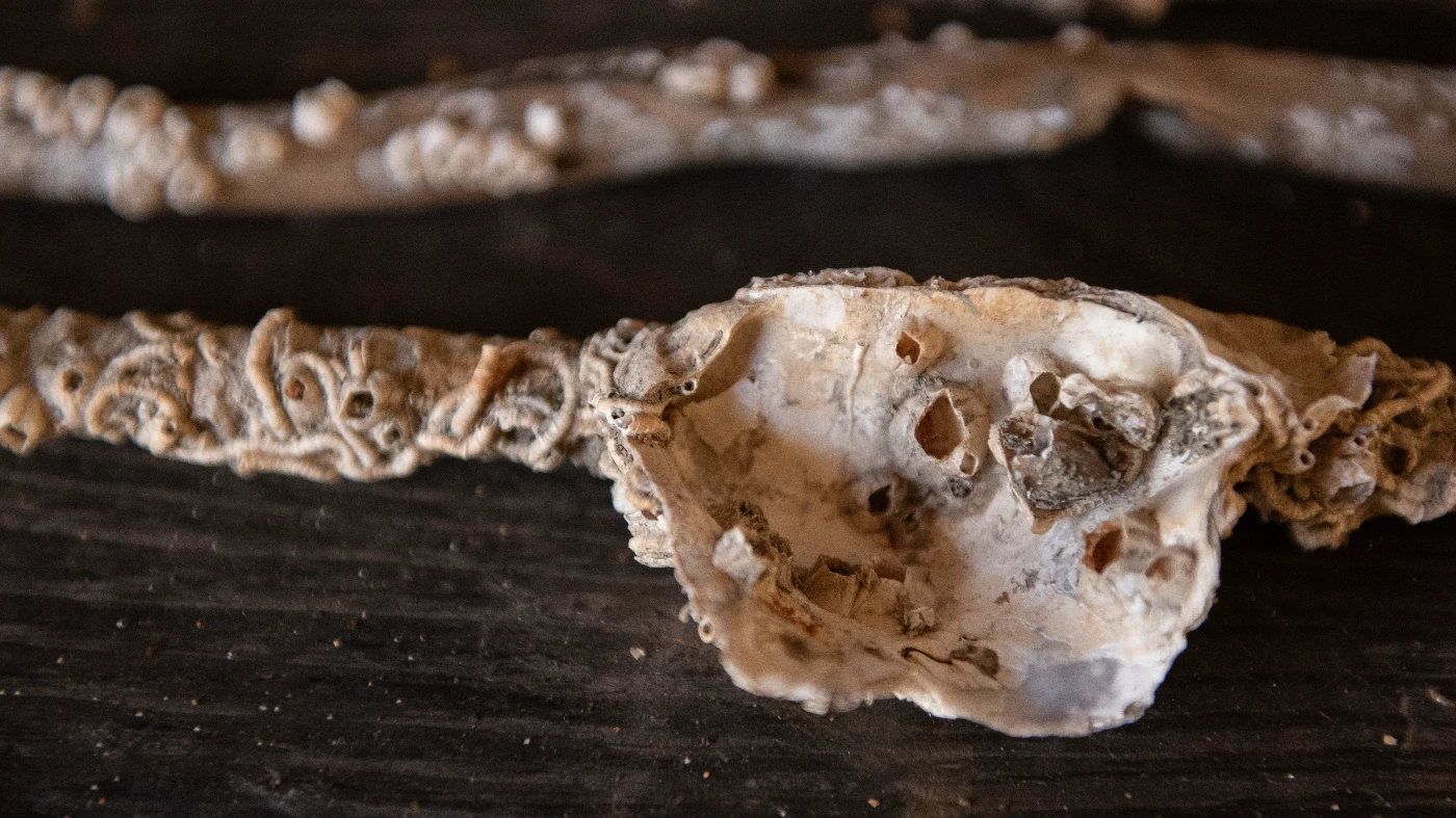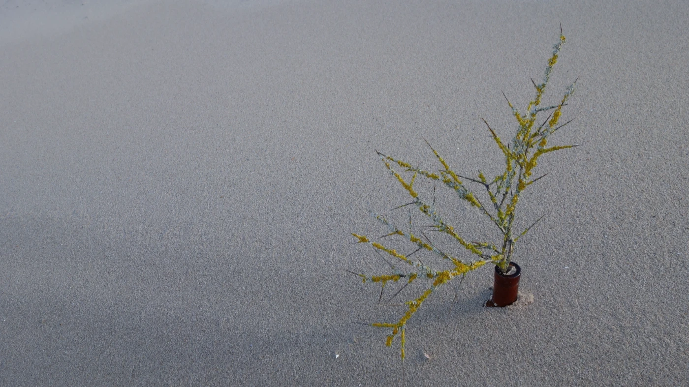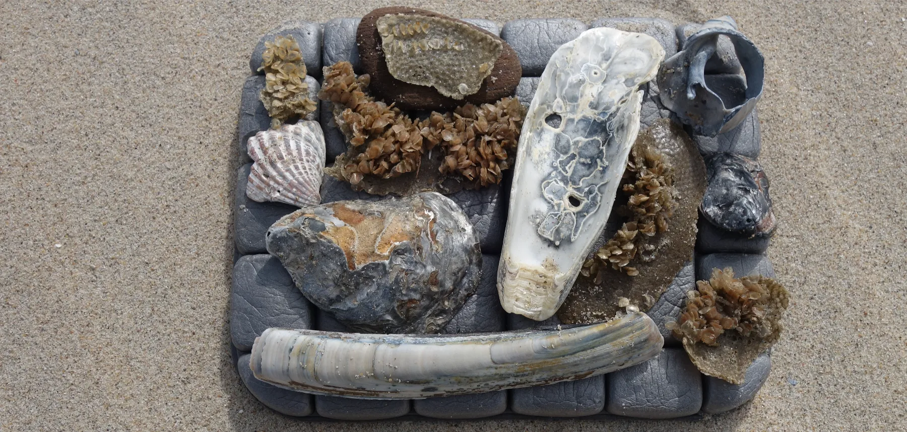 Het afgelopen jaar ben ik op zoek gegaan naar de klauwvoetjes van zeewier. Ook zo’n geweldig fenomeen. Dat zijn de plekken waar zeewier zich op vastzet, zich aan vast klauwt. Dat kan een rots zijn, maar ook een schelp of steentje. Daar groeien parasieten op mee, mosjes, pokjes en dat zijn ware kunststukjes op zichzelf. Je hoeft in aangespoelde kluwen wier maar even te graaien en je herkent al snel de ‘beginstukjes’, het klauwvoetje. Daar waar het wier zich begint te vertakken. Ik scheur die af en verzamel ze en verwonder me thuis steeds opnieuw over die fantastische onderwaterwereld die alleen al in zo’n voetje aan het daglicht is verschenen.”